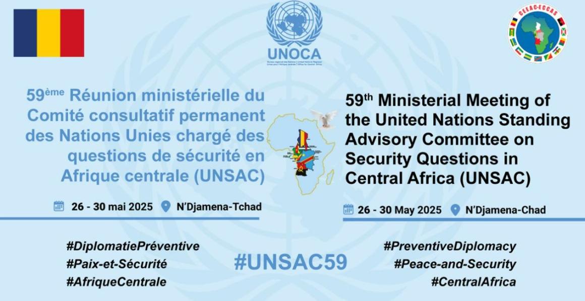 La 59e réunion du Comité consultatif permanent des Nations Unies chargé des questions de sécurité en Afrique centrale (UNSAC) se tiendra du 26 au 30 mai 2025 à N’Djamena, capitale du Tchad, sur le thème « l’impact de la situation humanitaire en Afrique centrale ». Les agences spécialisées de l’ONU et la Communauté économique des Etats de l’Afrique centrale (CEEAC) présenteront un état des lieux, en s’appuyant, entre autres, sur des cas concrets ainsi que sur les conclusions du Sommet extraordinaire des Chefs d’Etat et de Gouvernement tenu en février à Malabo (Guinée équatoriale) sur cette question cruciale. Les conséquences de la crise dans l’Est de la République démocratique du Congo (RDC) occupera une place importante dans les discussions tout comme celles des activités du groupe terroriste Boko haram dans le bassin du lac Tchad.